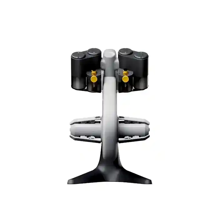 Yaylı döner makara tutucu, makarayı orta delikten kavrayarak özellikle kağıt makaralar için makara uyumluluğunu artırır.