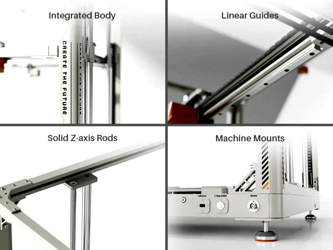 820 mm² x 820 mm² (4 bağımsız 410 mm² x 410 mm² PEI plaka)Makine Boyutu